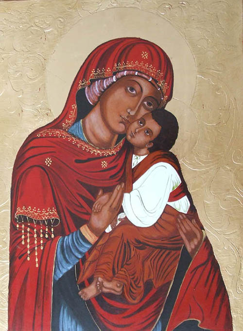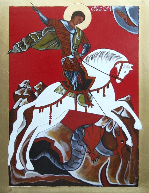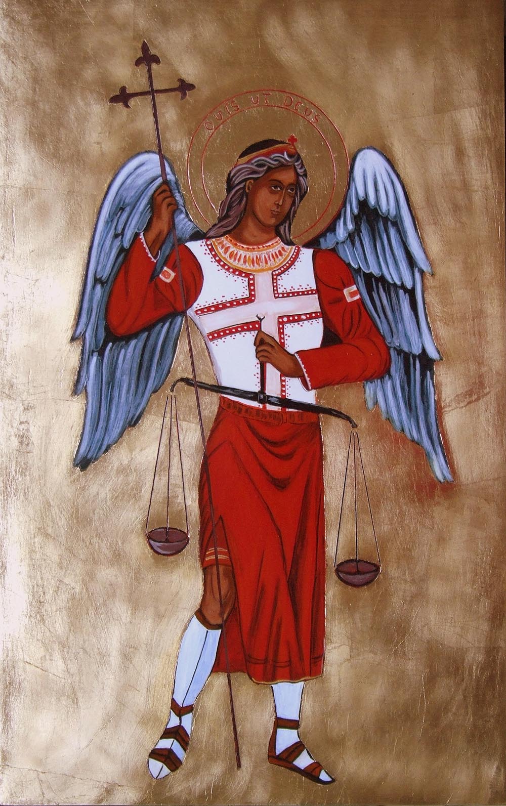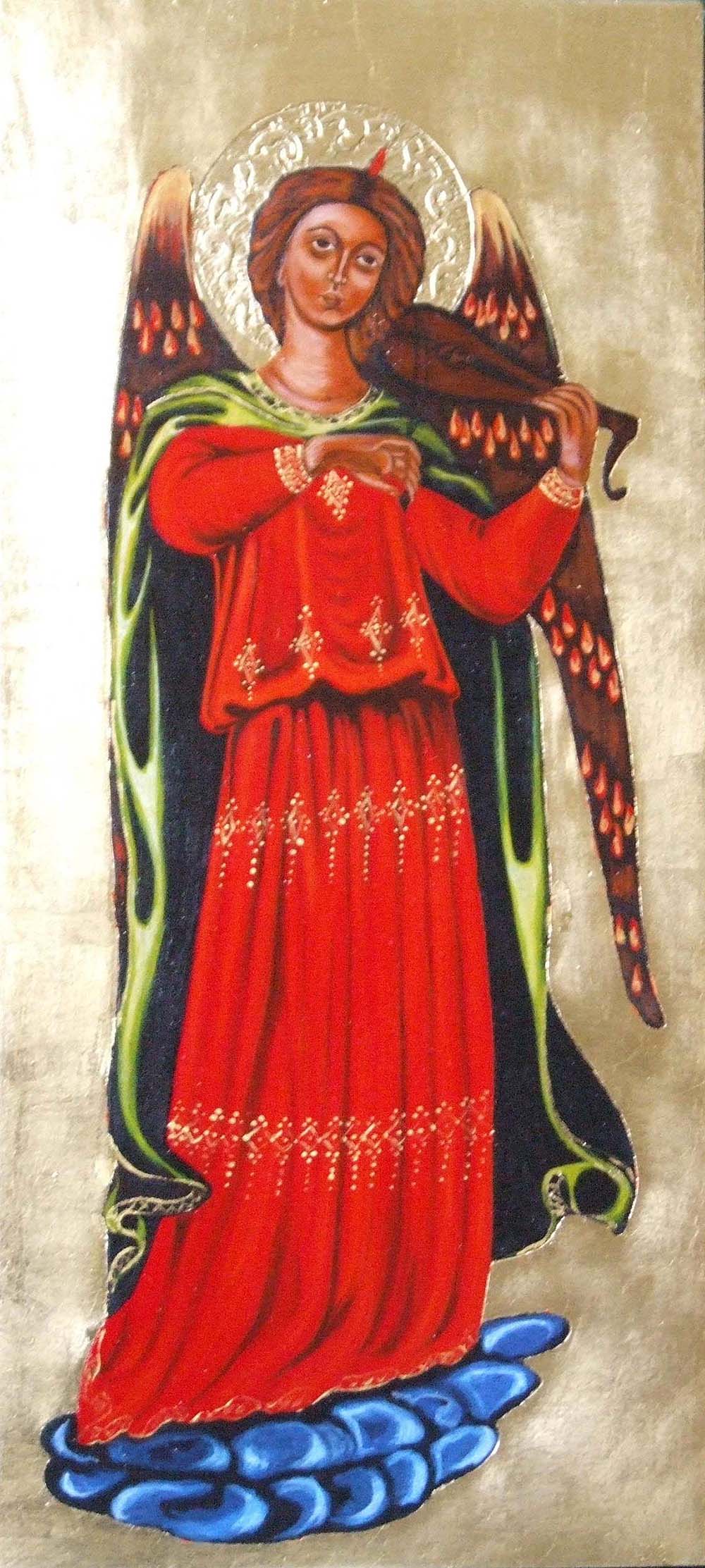 Do pisania ikon używam farb temperowych rozpuszczanych w żółtku kurzym. Do złocenia używam złota w płatkach. Złoto w ikonie nie wyraża koloru lecz rzeczywistość nieba, obecną wśród nas.
